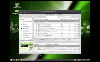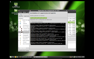 La gestion de l’installation / suppression de logiciel se fait via le menu Gestionnaire de Paquets (qui lance Synaptic) ou le Gestionnaire de Logiciels qui est déjà moins g33k3sque 🙂