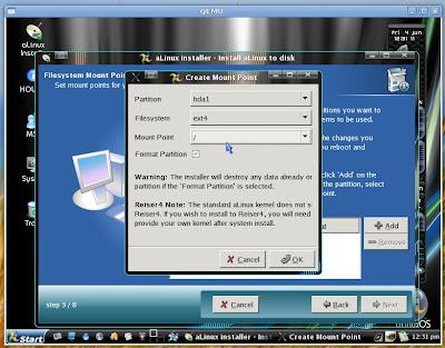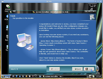 On tombe sur un environnement KDE 3.5.10 (!!) mimant un peu l’interface de Microsoft Windows Vista. J’ai lancĂ© l’installateur pour avoir installĂ© en « dur » sur le disque virtuel.