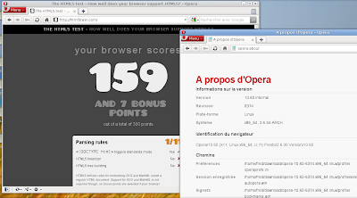 Après avoir récupéré la dernière version de développement d’Opera 10.60 trouvée via le blog des developpeurs d’Opera, ce dernier fait un bon immense… Il passe de 129 à 159 points…