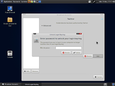 La distribution est très bien fourniesur le plan logiciel, et il ne manque que peu de choses. J’ai pu installer Gwibber sans aucun problème. Le seul hic : impossible d’ajouter le moindre compte, le tout étant lié au gestionnaire de mots de passe. Même en installant l’outil adéquat, rien ne change 🙁