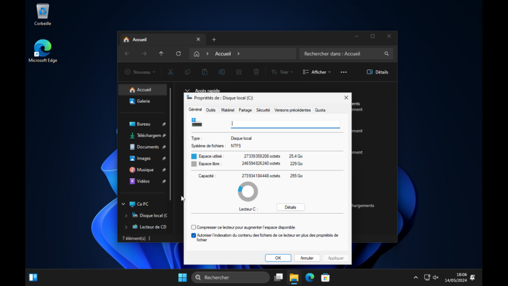 Au lieu des 64 Go d’espace disque recommandé, un Tiny11 peut descendre à une grosse vingtaine de Go installés.