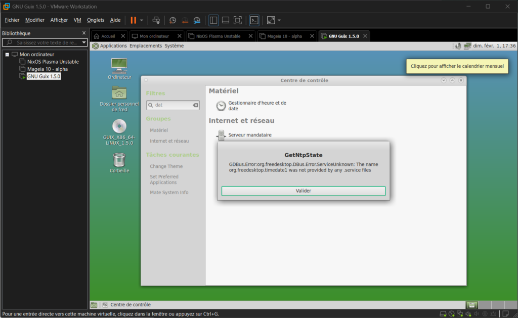 Quand j’ai voulu configurer le fuseau horaire, j’ai eu droit à une belle erreur. À croire que Mate a été testé par dessus la jambe…