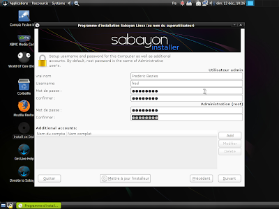 Après avoir configuré le fuseau horaire, on ajoute un – ou plusieurs – utilisateur(s), en sachant que seul le premier a des droits proche de ceux de root.