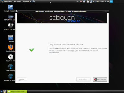 Une fois l’installation terminé, on peut soit faire redémarrer la machine, soit quitter l’installateur.