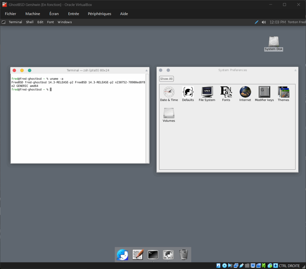 C’est écrit en tout lettre dans cet article du blog du projet GhostBSD. Bien que ce ne soit qu’une première version préliminaire, l’inspiration de MacOS est puissante, la preuve avec la capture d’écran ci-après.