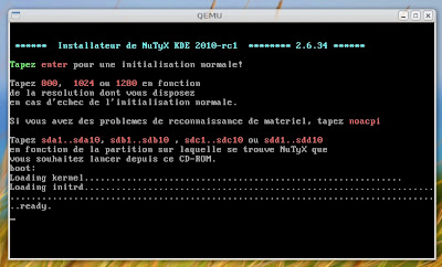Puis Qemu a été mon allié. J’utilise la machine virtuelle habituelle : 2 Go de mémoire vive, 128 Go de disque.